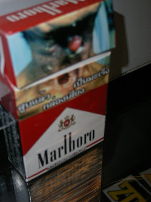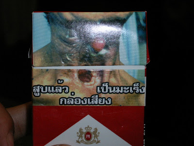 HELLOこの前、友達にタイ旅行のお土産もらいました。タイなのになぜか煙草とサッカーのゲームシャツ。良く分からん。で、こんなえぐい煙草いただきました。よーく見るとなんてグロテスクな煙草なんでしょうか。これ吸ったらこうなるのか?もしくはもうなってんのか?でも止められない、とまらな~い