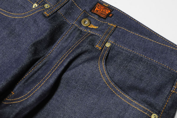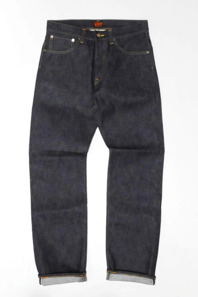 上同様のシルエット。股上をやや浅めで、ワタリ部分から裾にかけてのテーパードを強めにかけておりますので細身の綺麗なシルエットかつ、キャリーから出ているデニムで最も細いシルエットとなります。