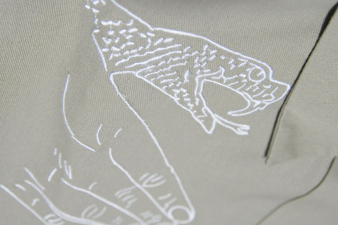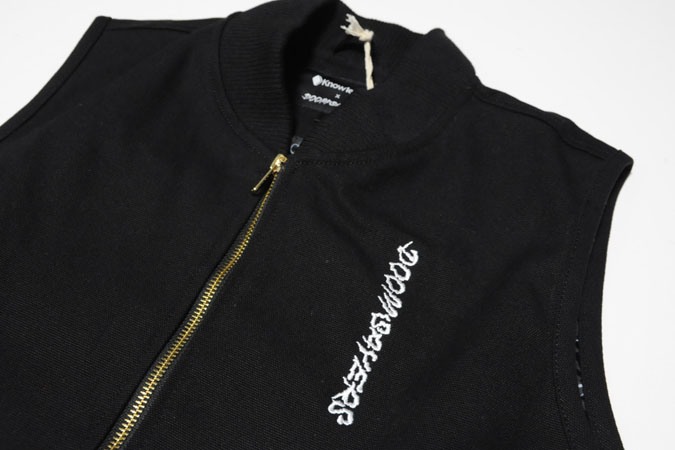 両胸の手は刺繍になっており凹凸と光沢のある感じです。メッシュキャップも同様です。ベストは薄手の帆布でダブルジップ、襟リブ、オリジナルの裏地。工場が変わったのか全体的に作りもよくなっている気がします。DOOM SAYERSとknow1edgeとのコラボレーションらしさが出ているコレクションとなっていますのでチェックしてみて下さい。