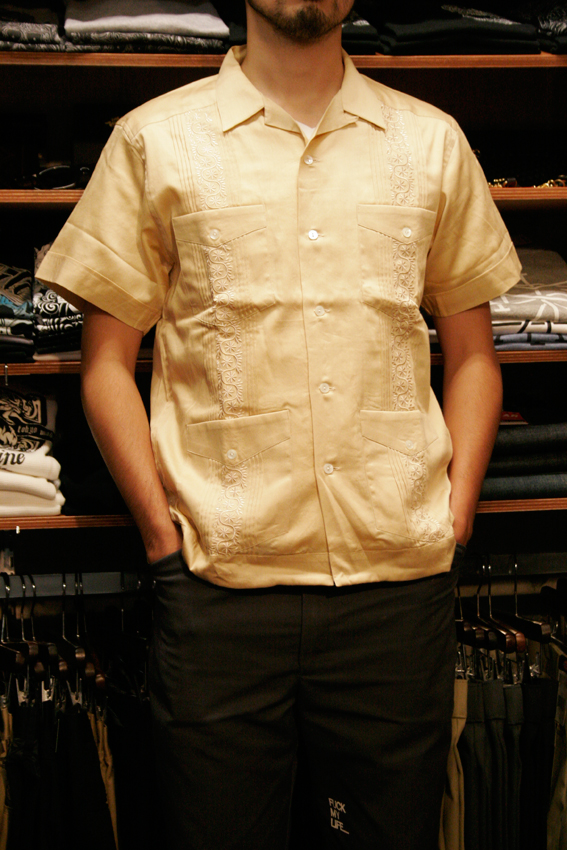 CALEE S/S Embroidery Shirts です。 レーヨンの光沢感がいいです。涼しげ!!
