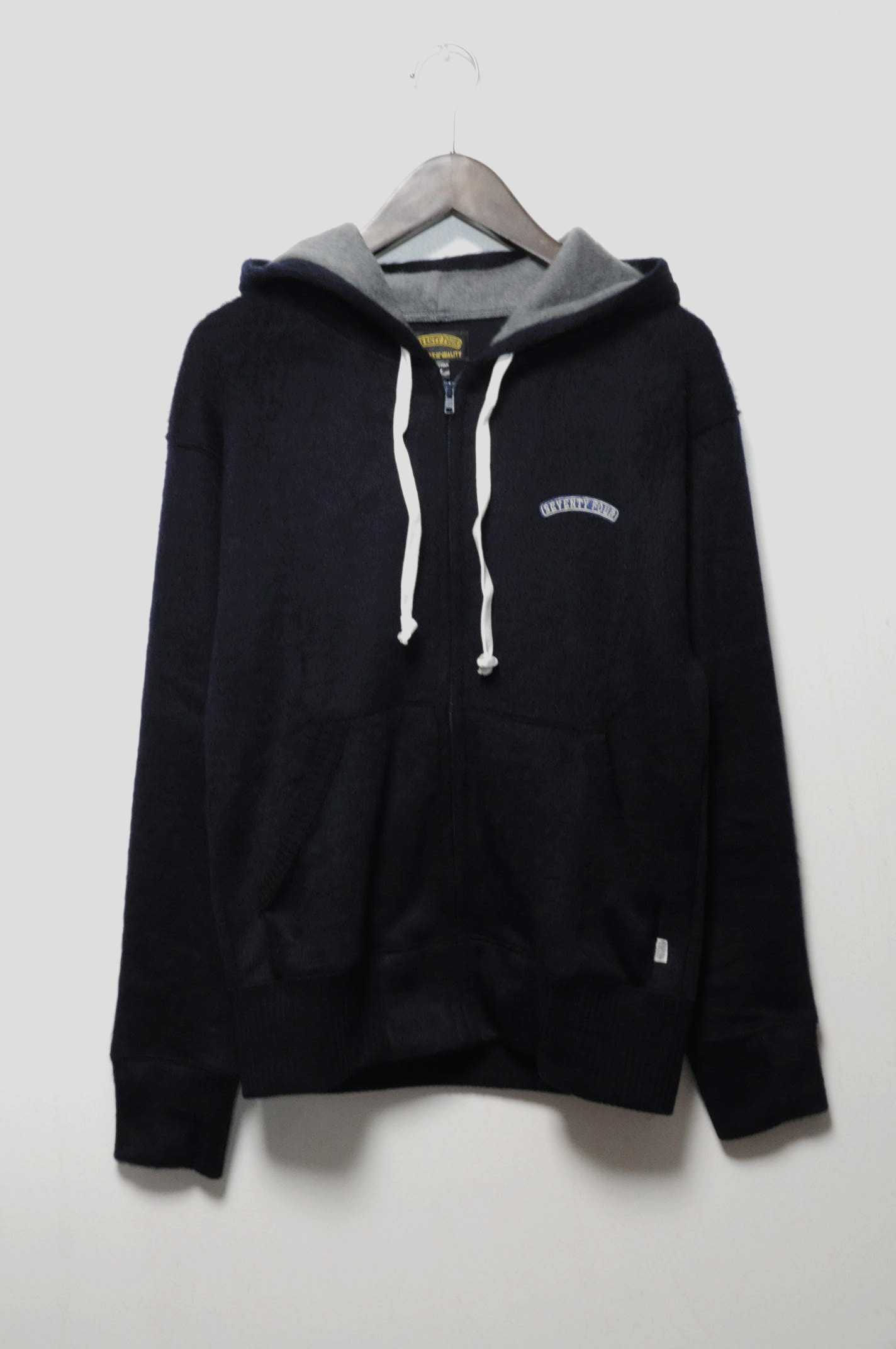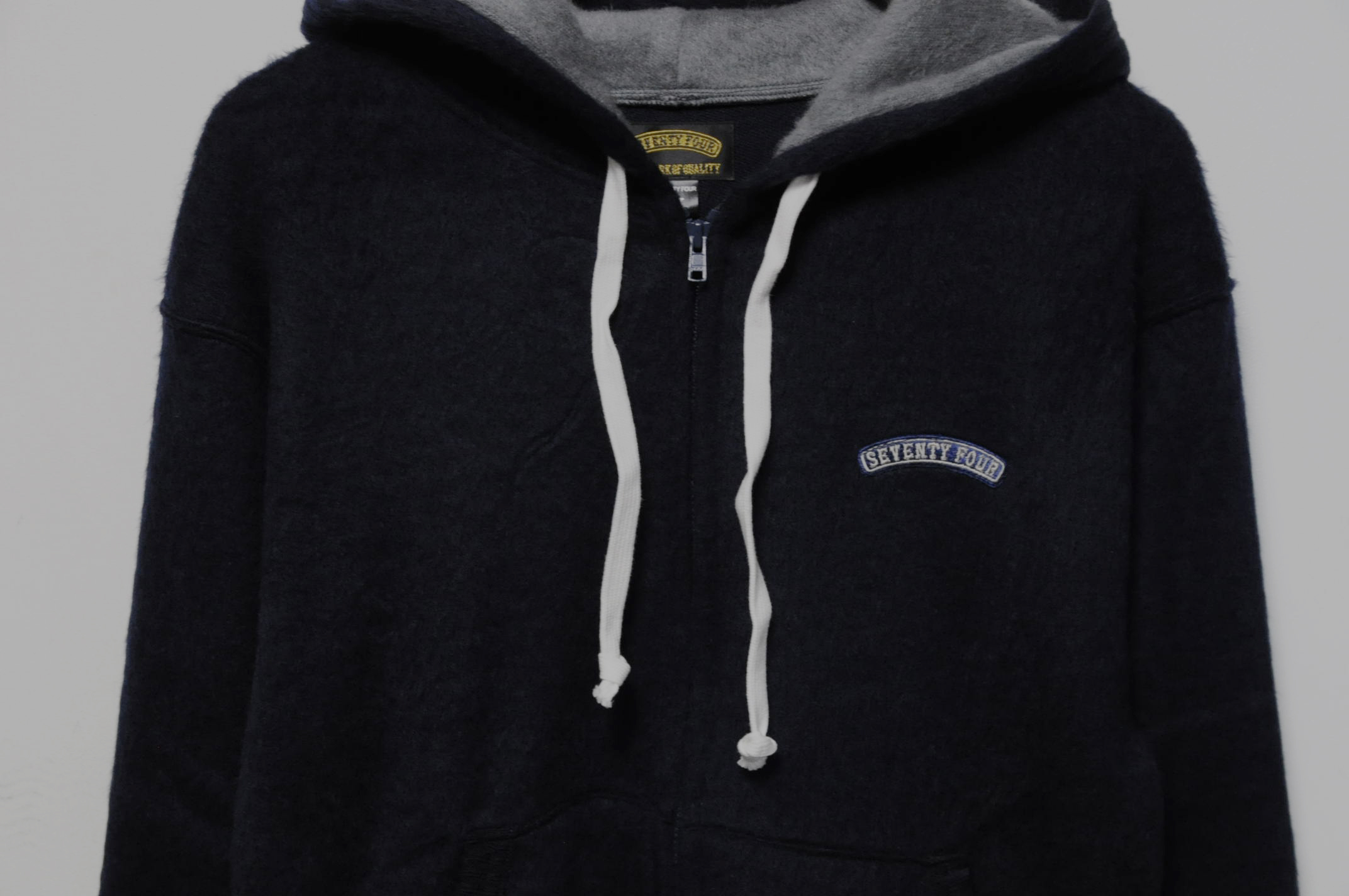 SEVENTY FOUR / MOHAIR ZIP UP KNIT HOODY -Navy- テイストが合いそうなパンツで2つ